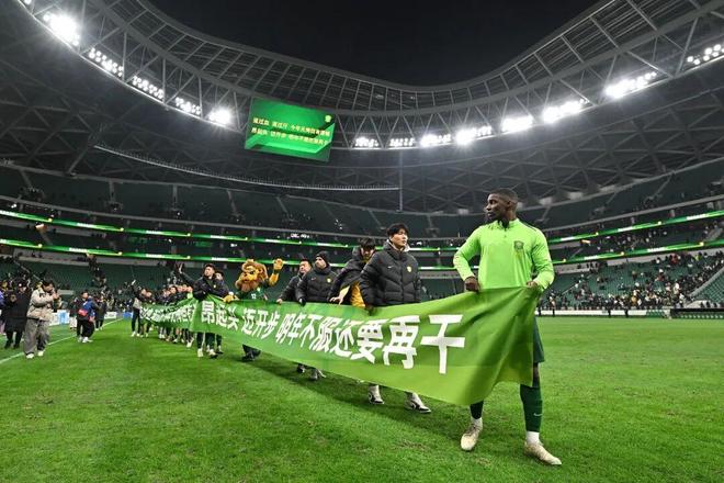 在结束了这场亚冠二级联赛小组赛后,北京国安队也正式结束了2025年的全部比赛。终场哨音响起之时,全体球员拉起了告别2025赛季的横幅。横幅上面写着:流过血、流过汗、今年无悔但有遗憾;昂起头、迈开步、明年不服还要再干。